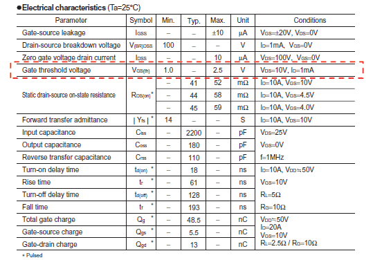 VGS(th) ist die Spannung, die zwischen Gate und Source nötig ist, um den MOSFET einzuschalten.