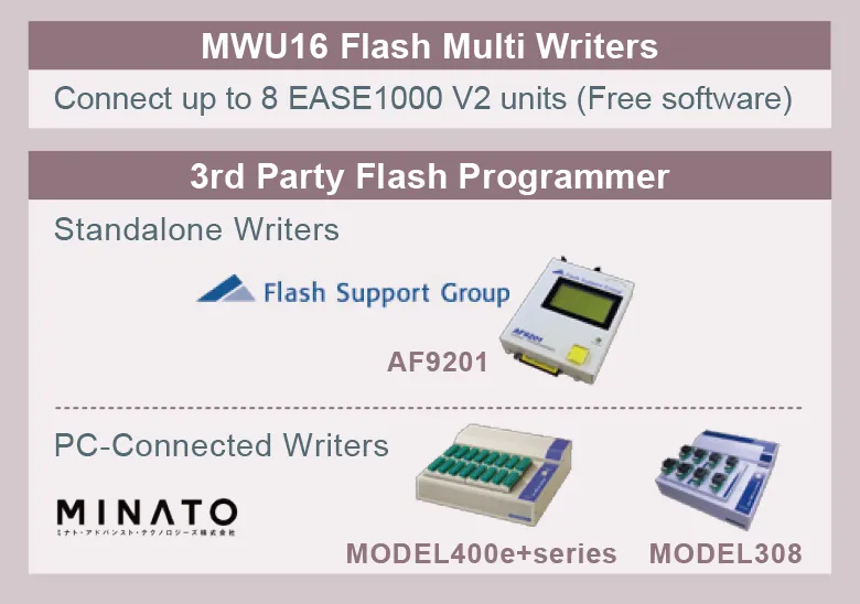 - Supports writing program files to multiple (up to 8) target Flash memory of the same type.