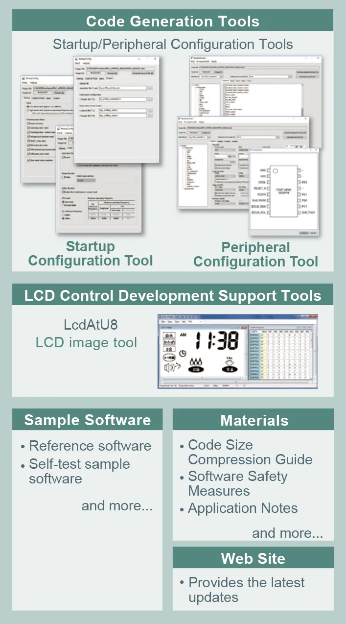 ・Offer highly functional, easy-to-use development tools, support tools that make application development easier, and a wide range of boards.
