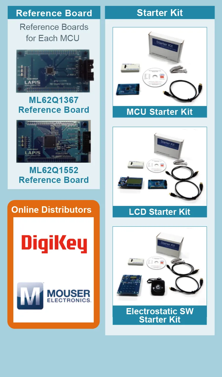 * EASE1000 V2 is compatible with microcontrollers equipped with LAPIS Technology 8-bit RISC processor and 16-bit RISC processor.