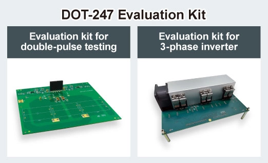 ROHM bietet umfangreiche Unterstützung auf Anwendungsebene, einschließlich der Nutzung des hauseigenen Motor-Prüfequipments. Darüber hinaus stellt das Unternehmen eine Vielzahl von Hilfsmitteln zur Verfügung, zum Beispiel Simulationen und thermische Designs, die eine schnelle Bewertung und Einführung von DOT-247-Produkten ermöglichen. Ein Evaluierungskit für Doppelimpulstests ist bereits verfügbar und ermöglicht sofortige Tests. Ein Evaluierungskit für 3-Phasen-Wechselrichter wird derzeit vorbereitet. Referenzdesigns werden voraussichtlich ab November 2025 verfügbar sein.