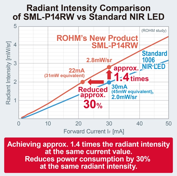 ROHM entwickelt kompakte oberflächenmontierte Nah-Infrarot-LEDs mit branchenführender* Strahlungsintensität