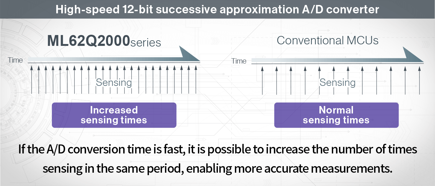 High-speed (Min 1.375μs / Ch.) A/D conversion is possible, and the number of times of sensing can be increased in a short period, contributing to improving measurement accuracy.