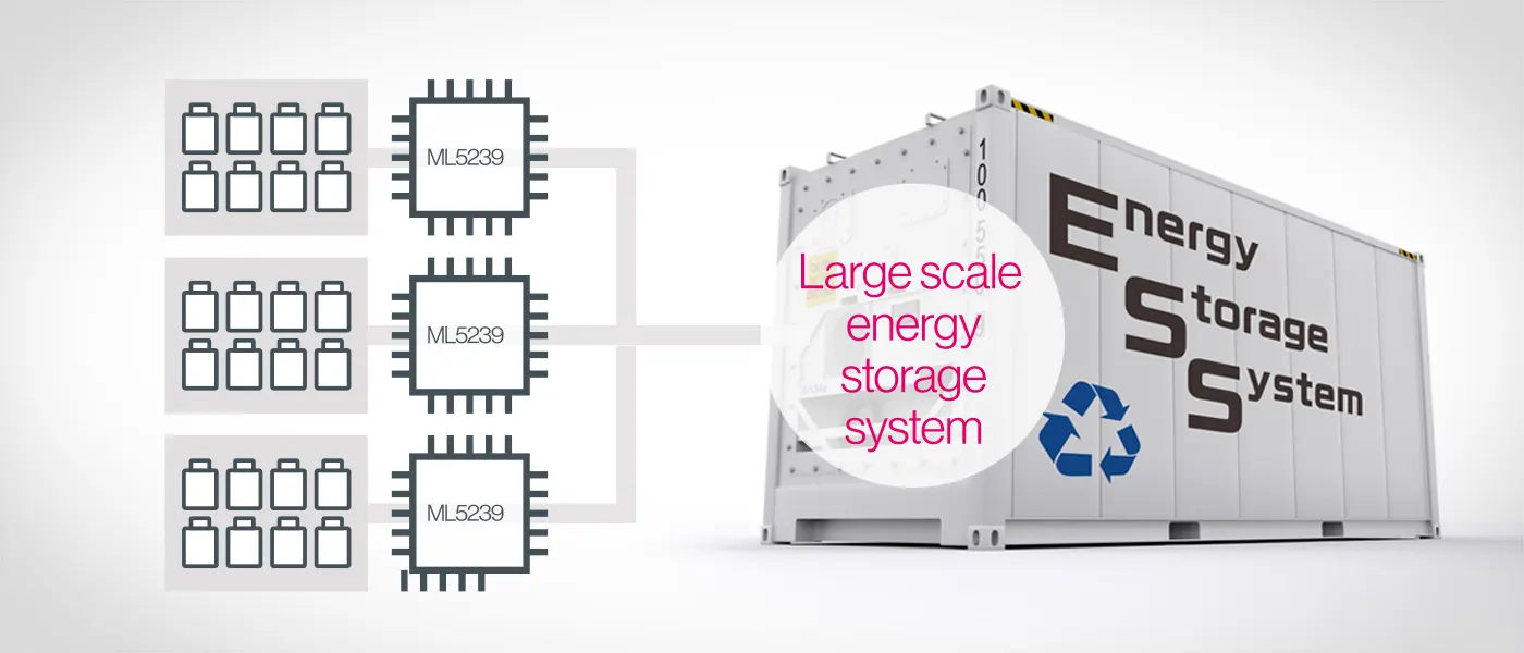ML5239 supports the multistage connection. It is possible to construct multi-cell high voltage Lithium-Ion battery systems, like a large-scale energy storage system.