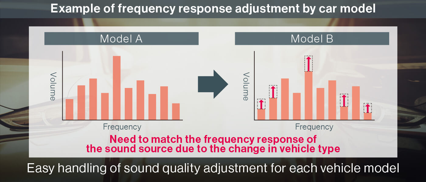 Example of pitch control Example of adjustment by a change in frequency response before and after mounting Example of frequency response adjustment by car model