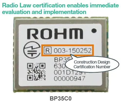 ROHM wireless communication modules have obtained certification under Japan’s Radio Law. And the pre-tuned wireless characteristics of the internal antenna allows customers to immediately begin development and evaluation without the need for complicated characteristics adjustment. Of course, Radio Law certification is not needed for the customer’s device.