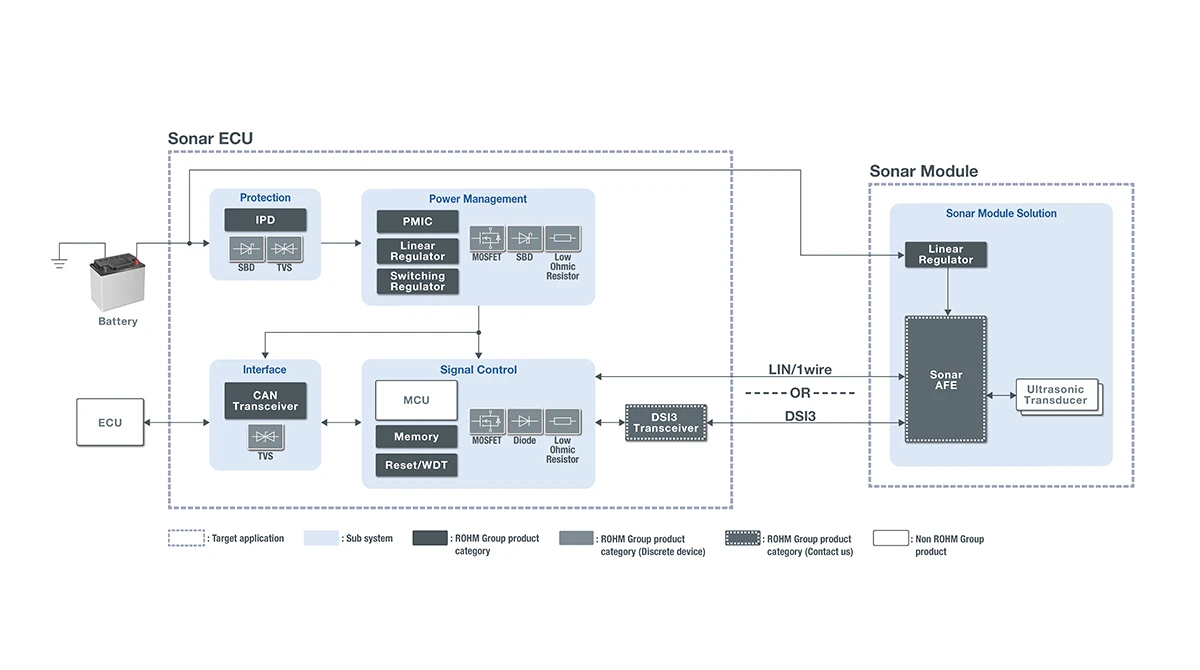 Bei ADAS und autonomem Fahren (AD) werden vier Arten von Sensoren zur Erfassung der Umgebung eingesetzt: Radar, LiDAR, Ultraschall-Sonar und Kameras. Ultraschall-Sonar eignet sich hervorragend für die Überwachung und Objekterkennung im Nahbereich und wird daher beispielsweise in Einparkhilfen eingesetzt.
