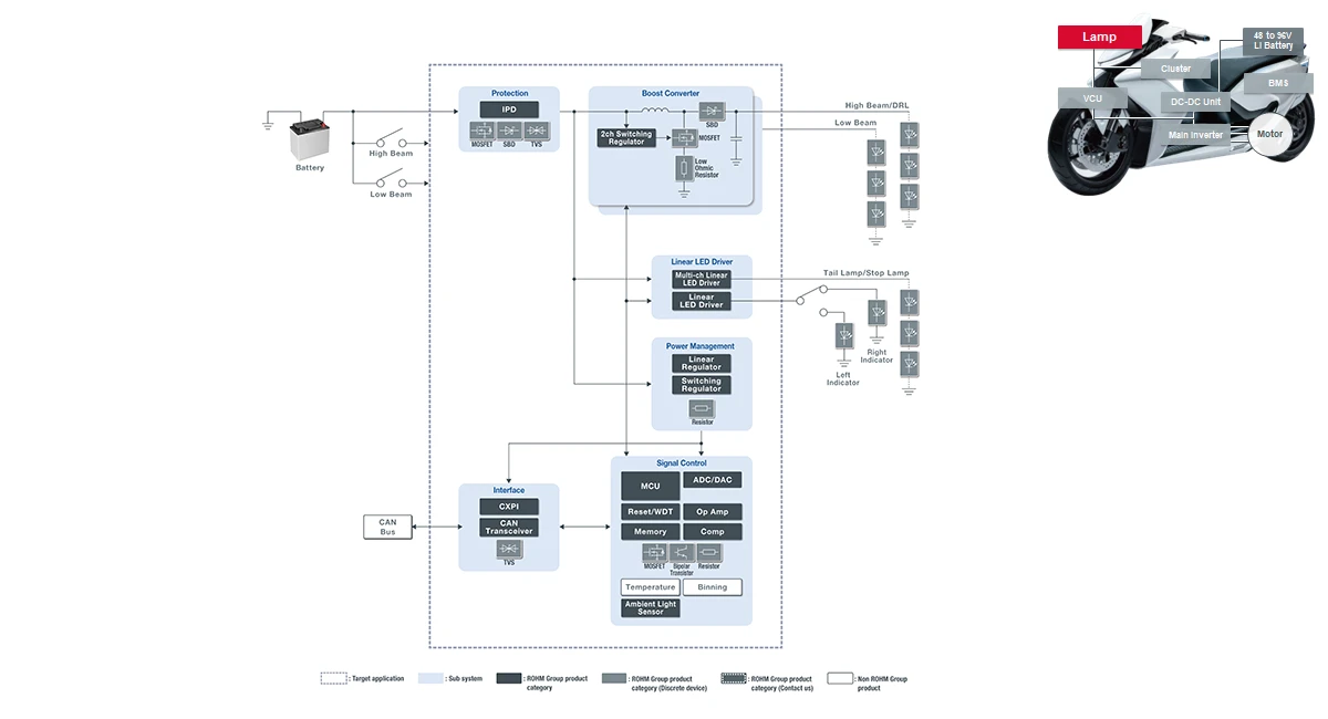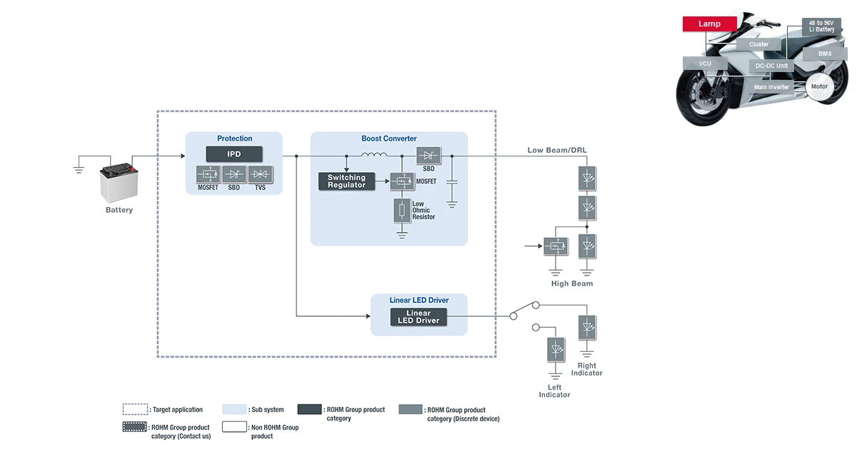 In Motorrädern geht die Beleuchtungssteuerung über den einfachen Ein-/Aus-Betrieb hinaus und erfordert eine präzise Einstellung der Helligkeit und der Lichtverteilung, um die Vorschriften der einzelnen Länder zu erfüllen, sowie eine koordinierte Steuerung zwischen den Scheinwerfern und anderen Lampen.