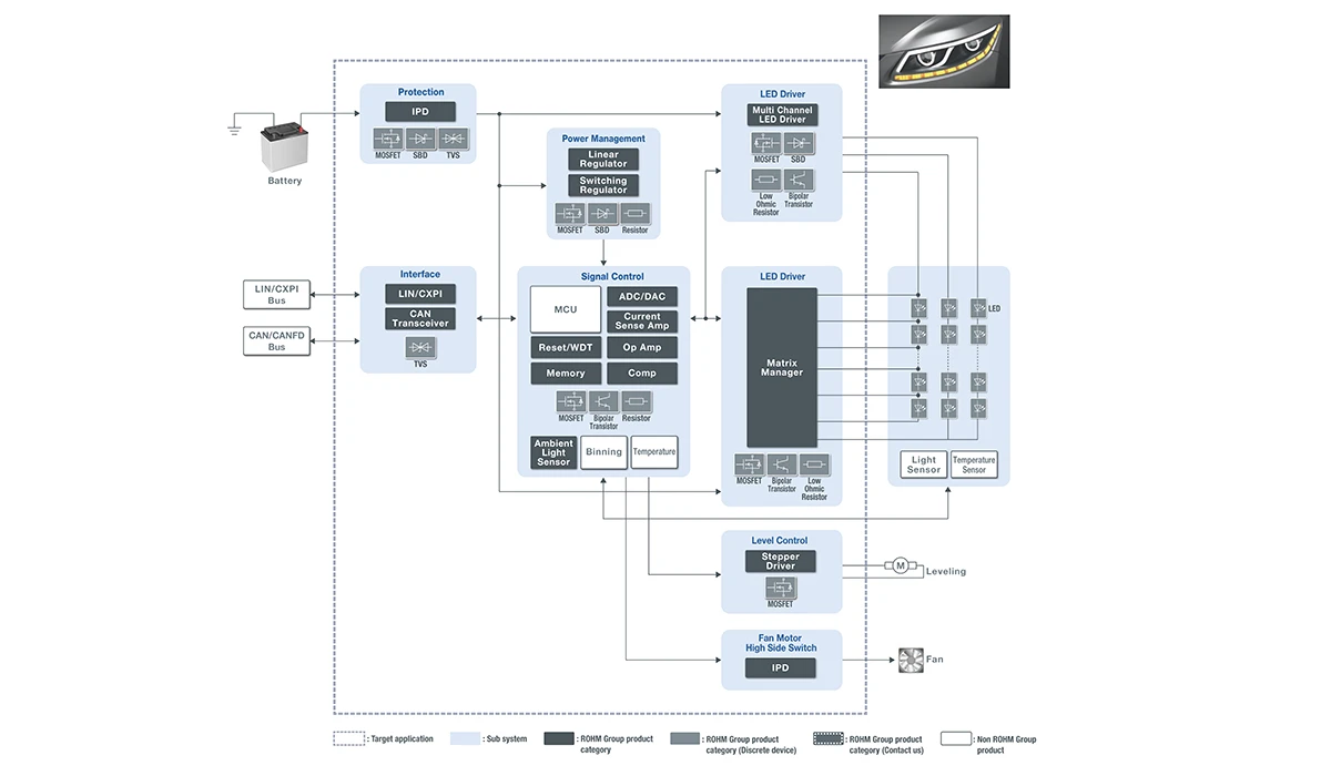 Durch die Bereitstellung von leistungsstarken LED-Treiber-ICs und Peripheriekomponenten wie Schottky-Barrieredioden, die das notwendige Gleichgewicht der Eigenschaften anstreben, trägt ROHM zu diesen funktionalen Verbesserungen bei.