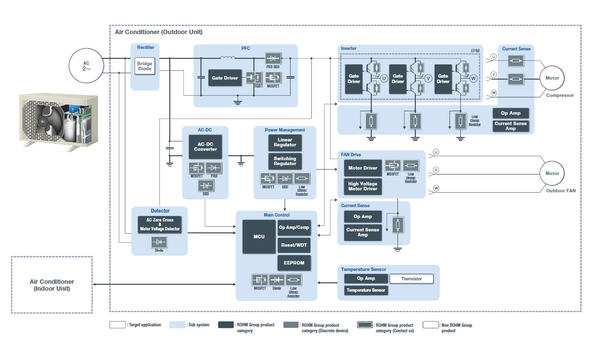 ROHM begegnet diesen Herausforderungen im Bereich der Energieeinsparung mit Lösungen, die sich auf Leistungsbauelemente für Wechselrichterschaltungen konzentrieren.