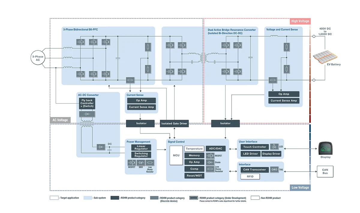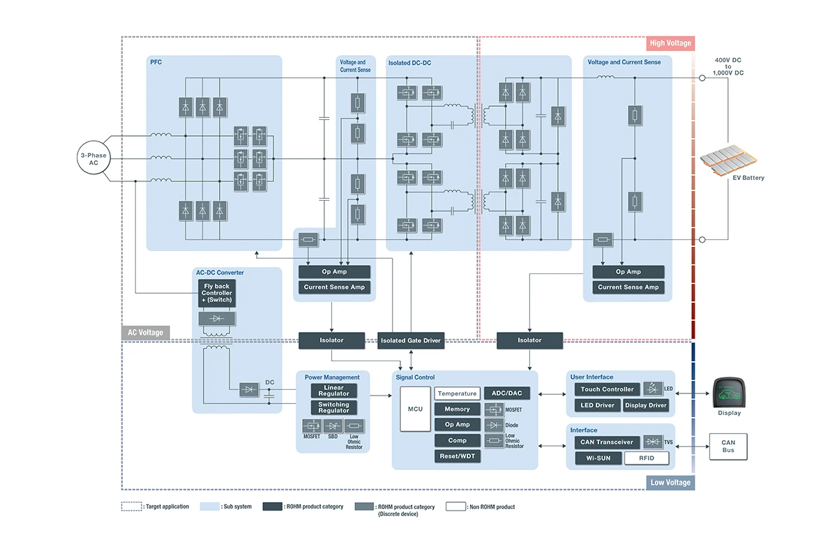ROHM trägt nicht nur mit Power-Lösungen auf Basis verschiedener Leistungshalbleiter und Treiber-ICs, insbesondere SiC-Bauelementen, sondern auch mit hochpräzisen Strommessungen mittels Shunt-Widerständen und Strommessverstärkern zu einer weiteren Steigerung der Ladeeffizienz bei.